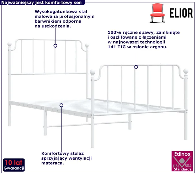 • Kolor: biały. W naszej ofercie posiadamy także inne łóżka metalowe.  Kliknij i stwórz swój wyjątkowy zestaw mebli.