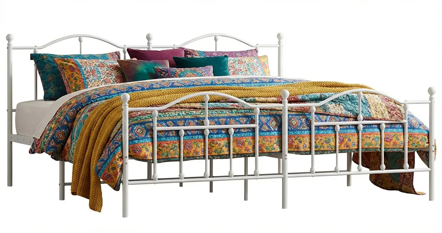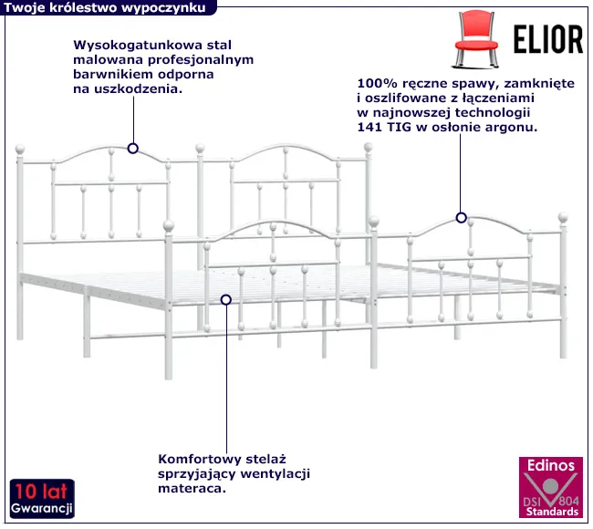 Białe metalowe łóżko małżeńskie Azos