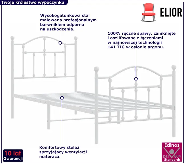 Dotyczy: Czarne metalowe łóżko pojedyncze 90x200 cm - Azos