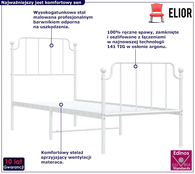 Dotyczy: Czarne metalowe łóżko loftowe 90x200 cm - Barold