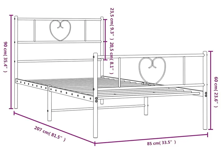 • Wymiary całkowite: długość 207 cm, szerokość 85 cm, wysokość 90 cm