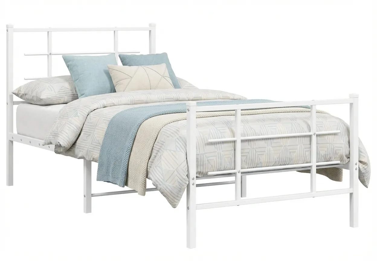 Biała metalowe łóżko pojedyncze Alester