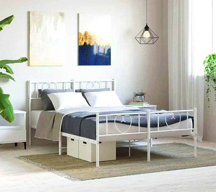 Białe metalowe łóżko małżeńskie 140x200 cm - Veligo