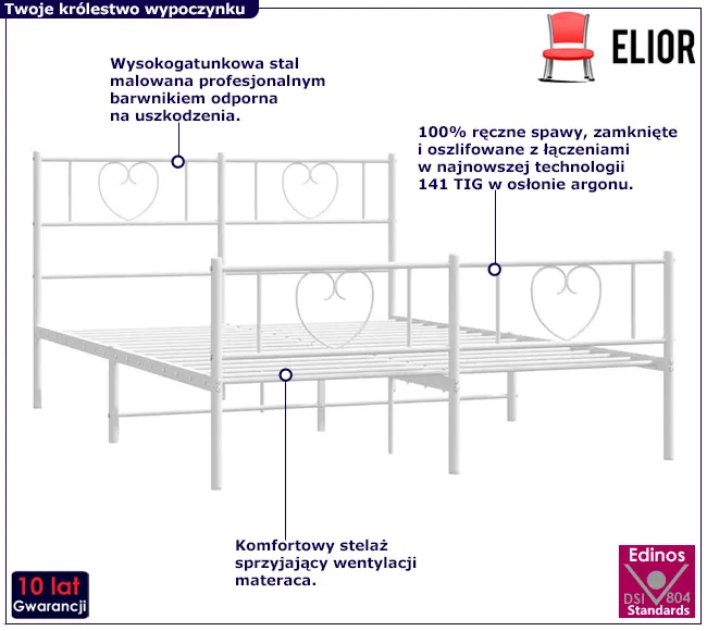 • Kolor: Biały. W naszej ofercie posiadamy także inne łóżka metalowe.  Kliknij i stwórz swój wyjątkowy zestaw mebli.