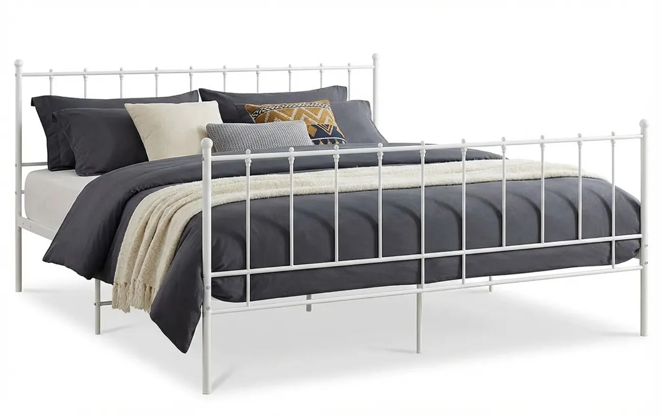 Białe metalowe łózko małżeńskie 160x200 cm - Laxi