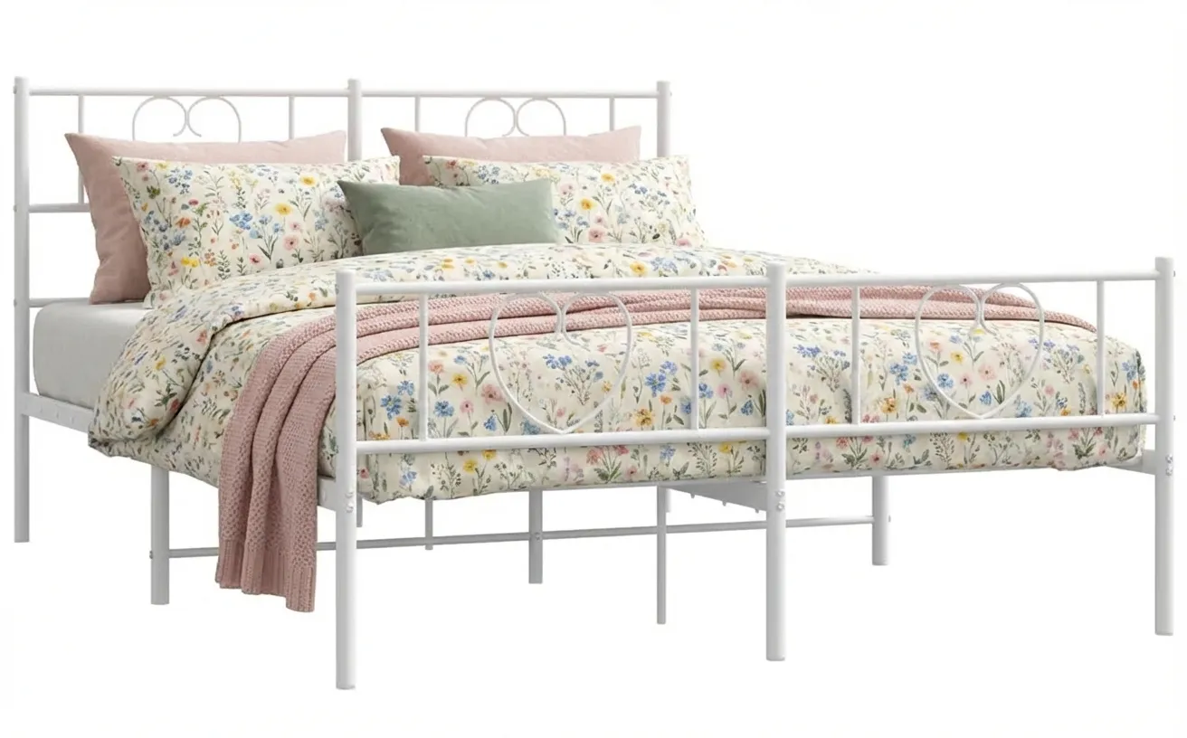 Białe metalowe łóżko małżeńskie 160x200 cm - Veligo