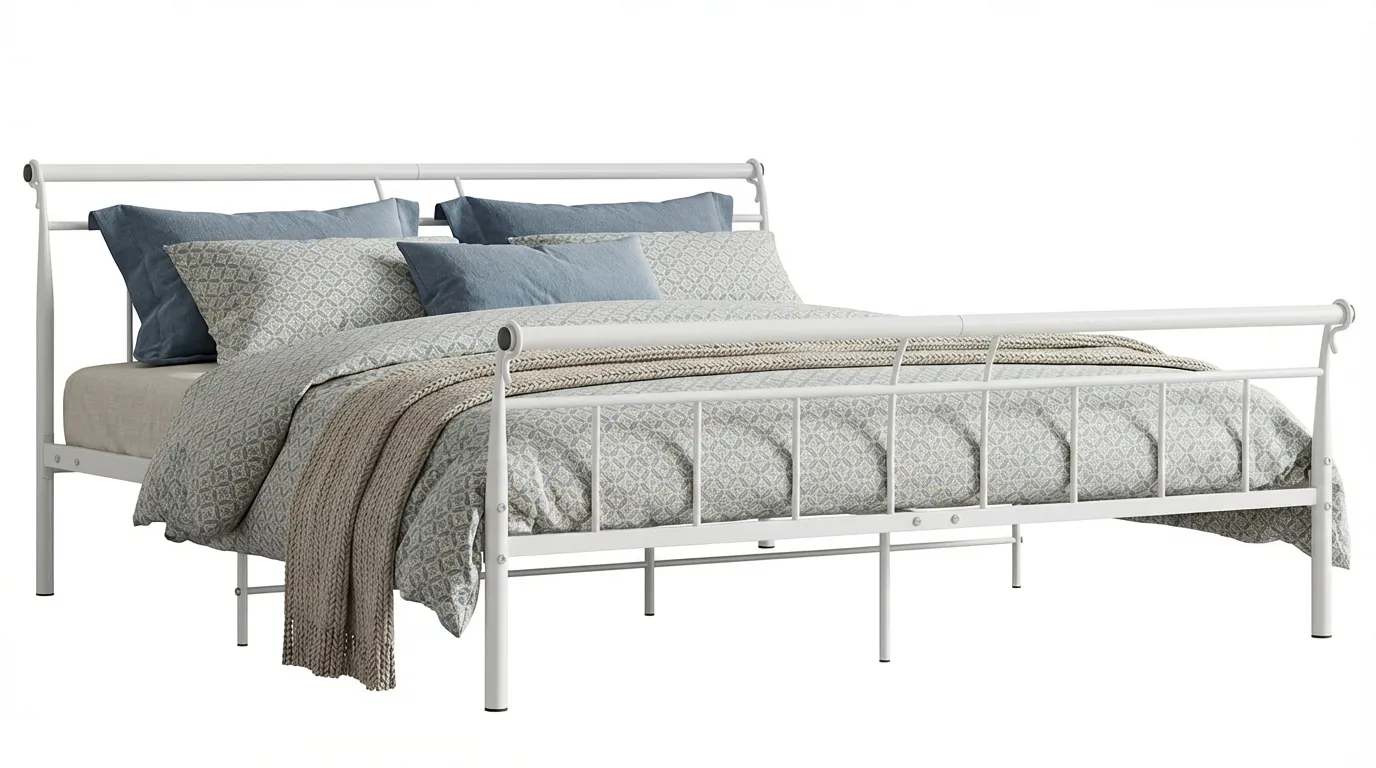 Białe metalowe łóżko małżeńskie 160x200 cm - Ventano