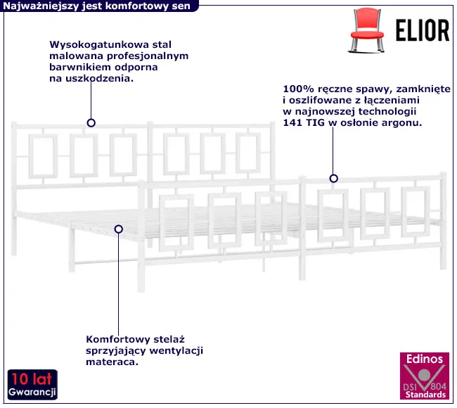 • Kolor: Biały. W naszej ofercie posiadamy także inne łóżka metalowe.  Kliknij i stwórz swój wyjątkowy zestaw mebli.