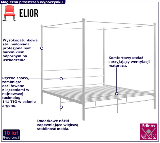 Białe duże metalowe łóżko z baldachimem Aveiro