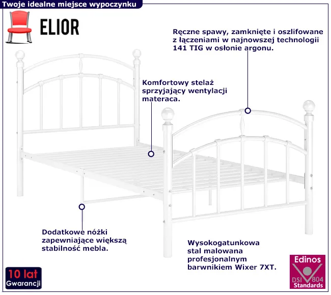 Dotyczy: Czarne metalowe łóżko jednoosobowe 90x200 cm - Serafi