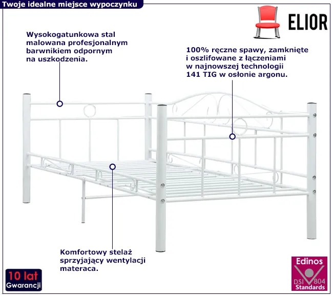 • Kolor: biały. W naszej ofercie posiadamy także inne łóżka metalowe. Kliknij i stwórz swój wyjątkowy zestaw mebli.