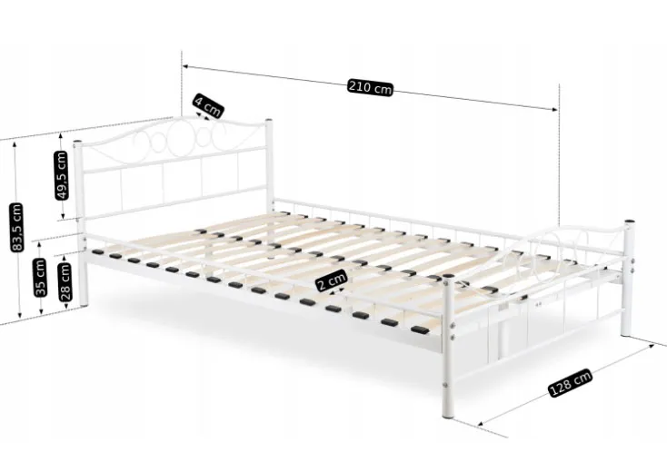 Dotyczy: Białe małżeńskie łóżko metalowe 160x200 - Lorix