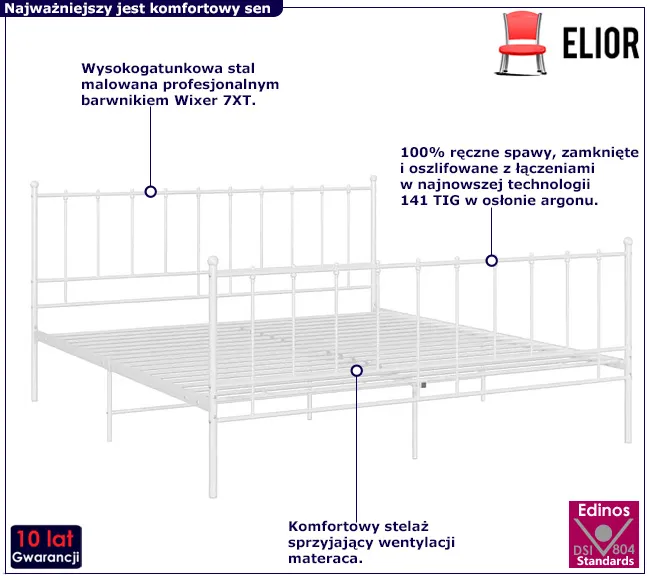 • Kolor: biały. W naszej ofercie posiadamy także inne łóżka metalowe.  Kliknij i stwórz swój wyjątkowy zestaw mebli.