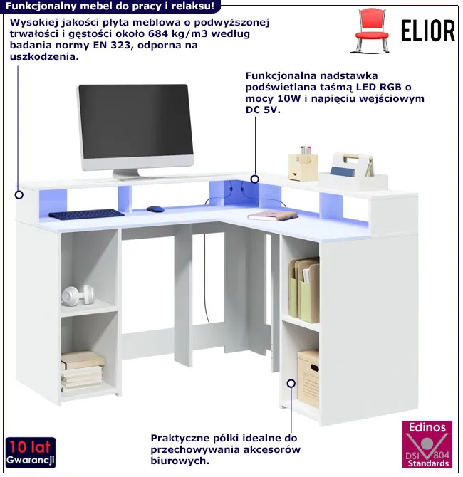 Dotyczy: Narożne biurko z nadstawką gamingowe LED - Relond