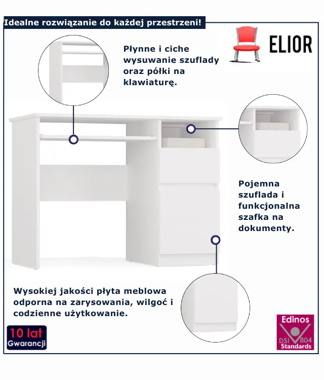 Dotyczy: Białe biurko z szafką lewostronne - Opes 4X