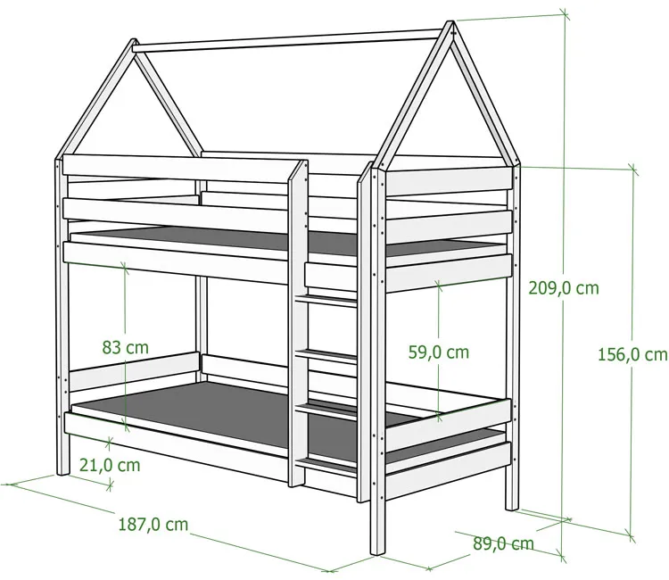 Infografika piętrowego łóżka domek dla rodzeństwa Delisa 3X