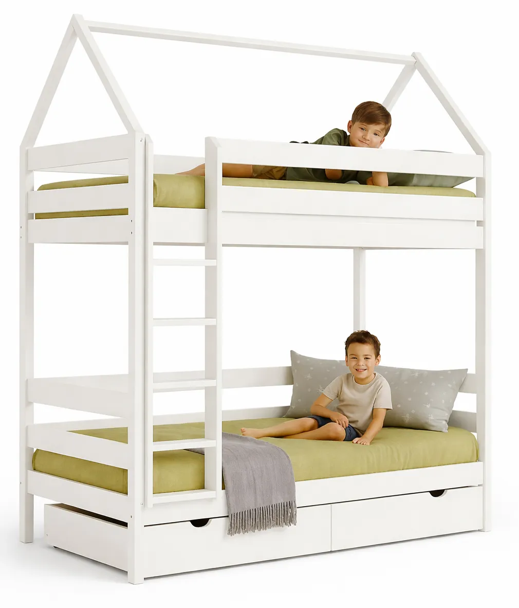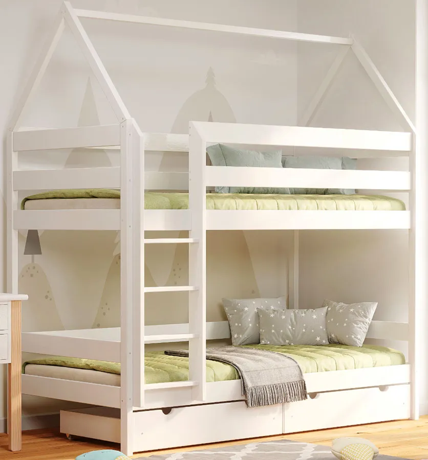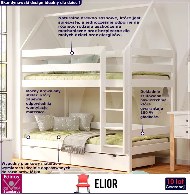 Dotyczy: Piętrowe łóżko domek z szufladą do sypialni dziecięcej, sosna - Delisa 4X 180x90 cm