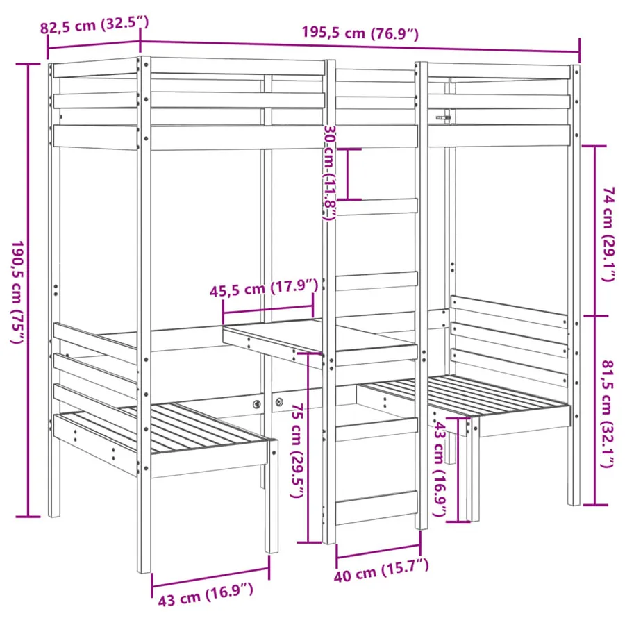 Dotyczy: Sosnowe łóżko piętrowe do małego pokoju 75x190 - Kerbi 3X