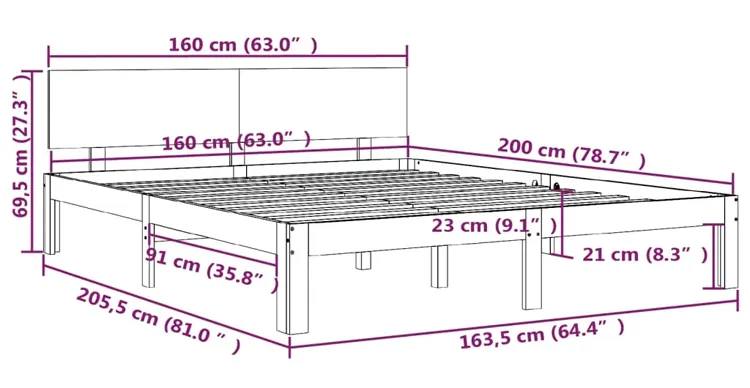 • Wymiary całkowite: szerokość: 163,5 cm, wysokość: 69,5 cm, głębokość 205,5 cm.