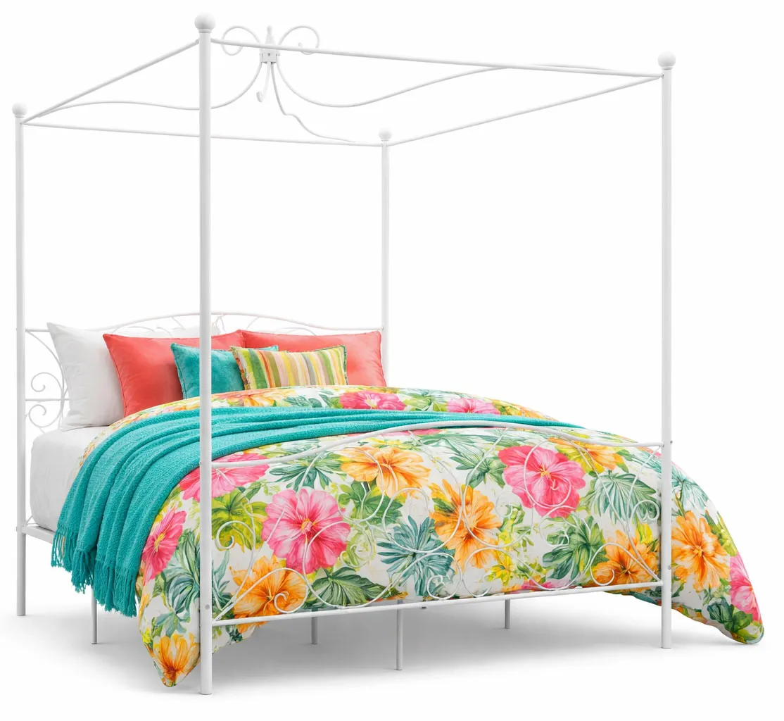 Białe metalowe łóżko z baldachimem Ifrexi