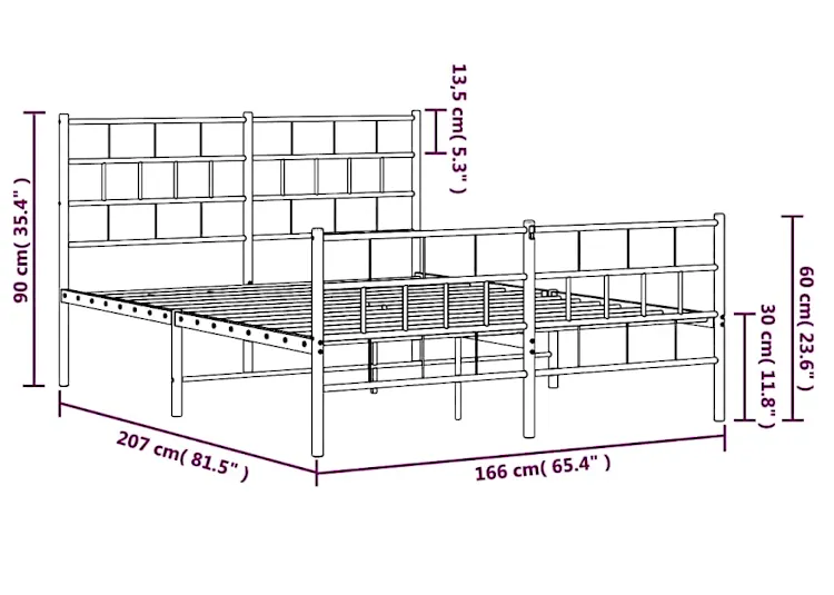 • Wymiary całkowite:  długość 207 cm, szerokość 166 cm, wysokość 90 cm.