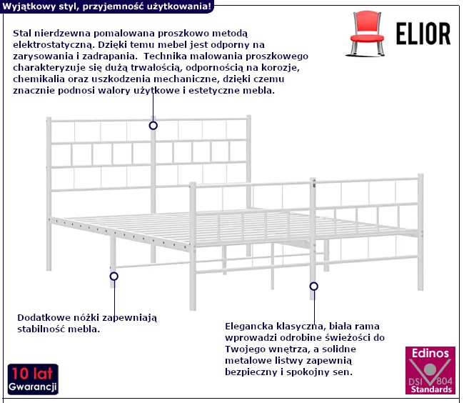 • Kolor: biały. W naszej ofercie posiadamy także inne metalowe łóżka.