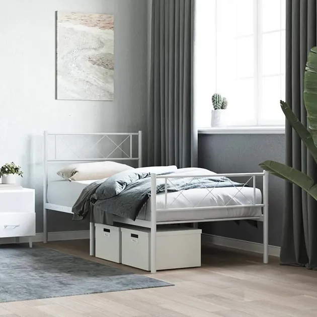 Białe pojedyncze łózko metalowe w stylu loft 90x200 cm - Raffa