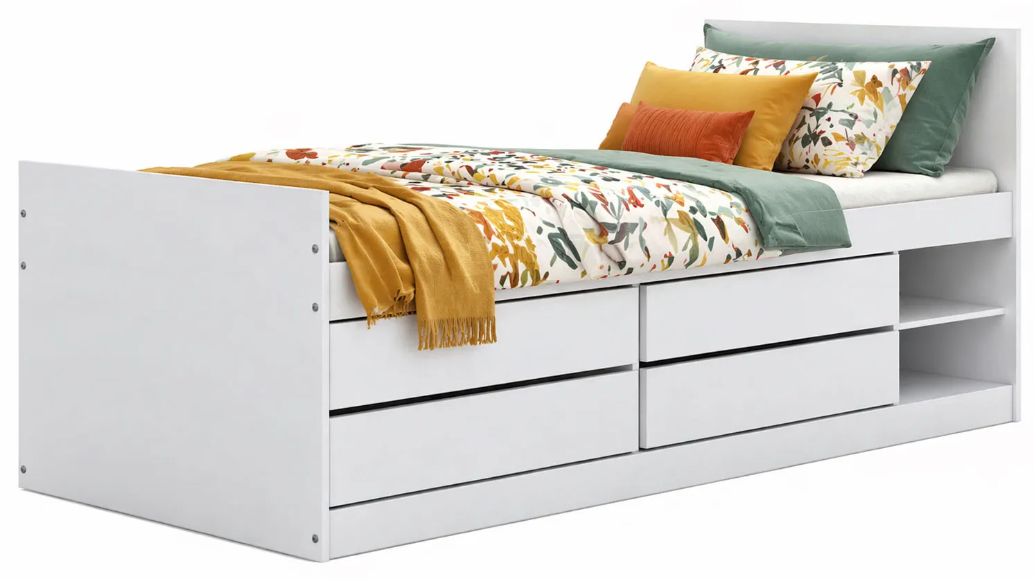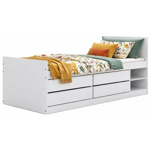 Białe pojedyncze łóżko z materacem i 4 szufladami 90x200 - Rawis