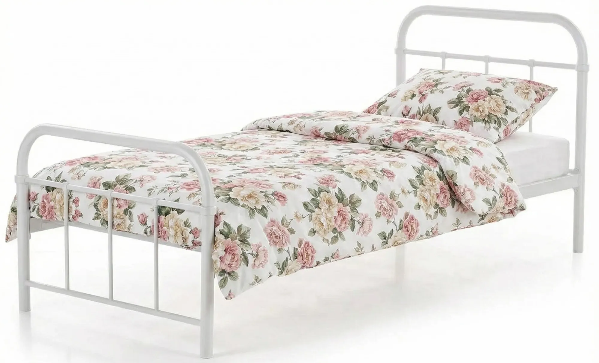 Białe pojedyncze łóżko z metalu 90x200 - Dirik