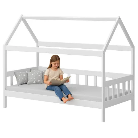 Dotyczy: Drewniane łóżko domek z barierkami, sosna - Laros 3X 180x80 cm