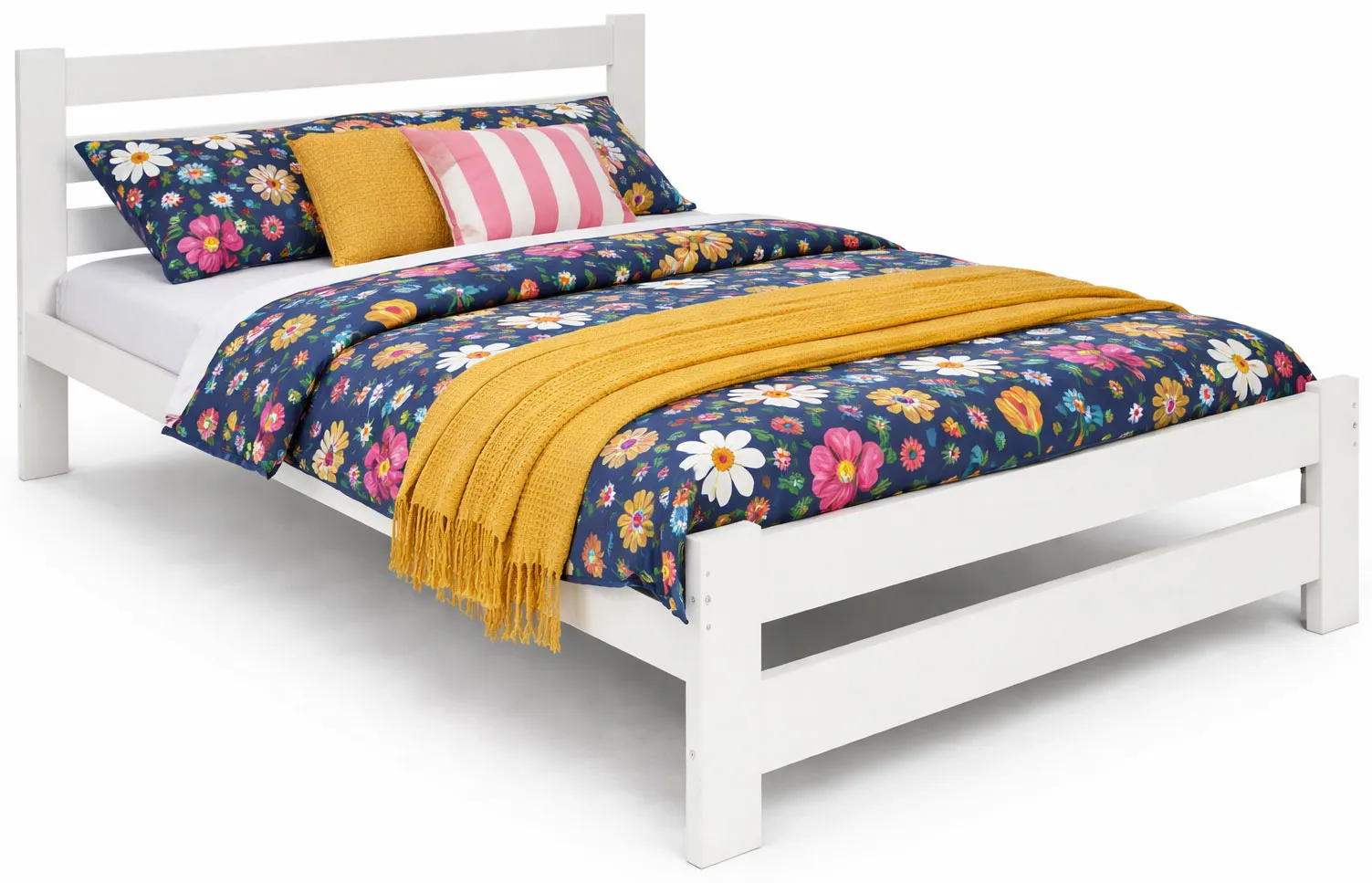 Białe sosnowe łóżko małżeńskie ze stelażem 140x200 - Berti 3X