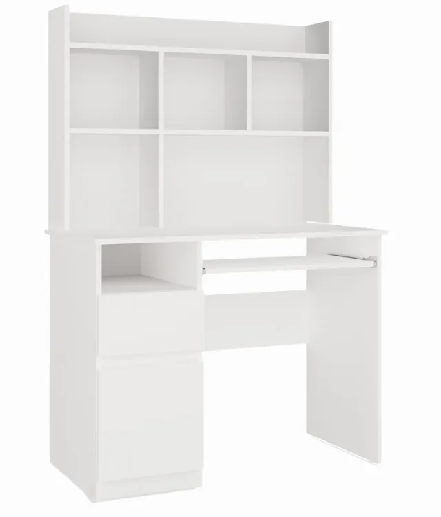 • Nadstawka z otwartymi półkami – umożliwia wygodne przechowywanie książek, zeszytów, akcesoriów i dekoracji.