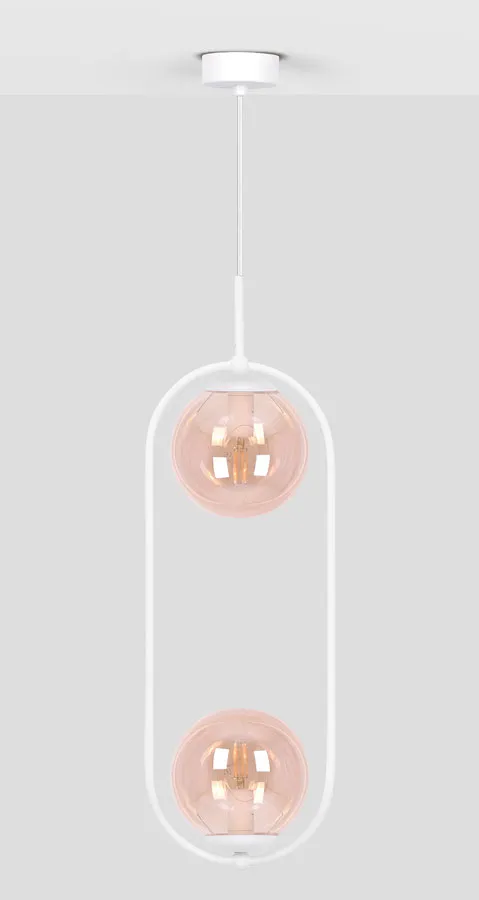 Nowoczesna biało-bursztynowa lampa wisząca z 2 szklanymi kloszami A489-Adoma