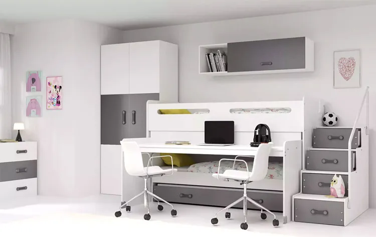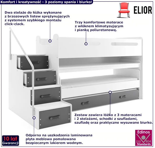 Dotyczy: Biało-różowe łóżko piętrowe dla dziewczynek z biurkiem - Asi