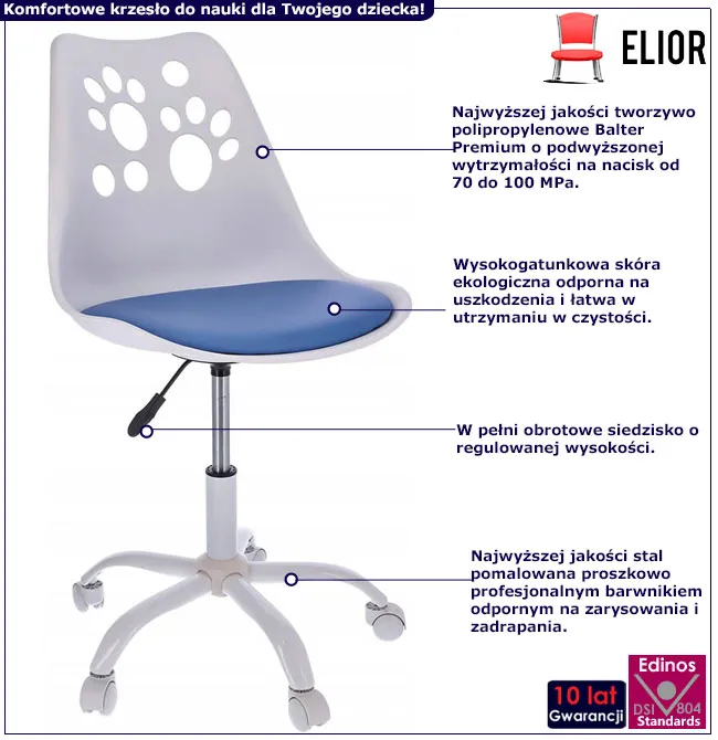 Dotyczy: Niebiesko-biały fotel obrotowy do biurka młodzieżowego - Crasio 3X