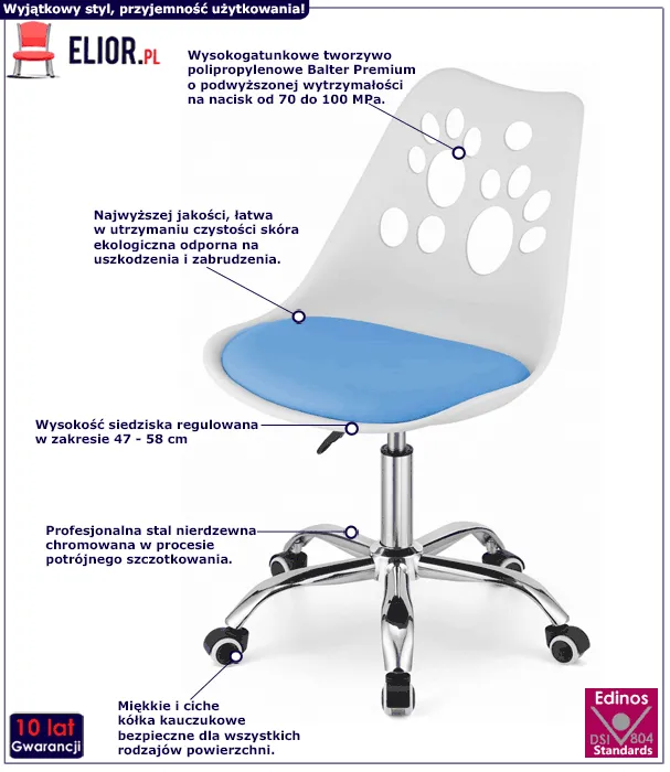 • Modny kolor: biało-niebieski. Sprawdź także inne fotele obrotowe dla dzieciKliknij i wybierz idealne meble do swojego wyjątkowego wnętrza.