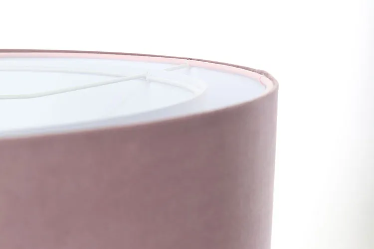 Materiał: abażur - tworzywo PCV, tkanina aksamitna i satynowa; wnętrze - biała apla; podsufitka - metal
