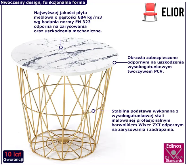 Dotyczy: Czarno złoty stolik kawowy z marmurkowym blatem - Koleno