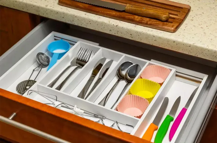 • wyposażony jest w 7 pojemnych przegródek, które zapewniają idealne przechowywanie i segregację przyborów kuchennych.