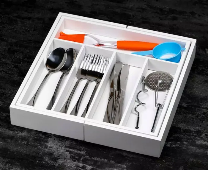 • rozsuwana konstrukcja ułatwia wkładanie i wyjmowanie sztućców, sprawiając że codzienne porządkowanie kuchni staje się prawdziwą przyjemnością.