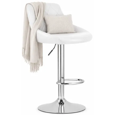 Biały chromowany hoker tapicerowany ekoskórą z oparciem - Melux 6X