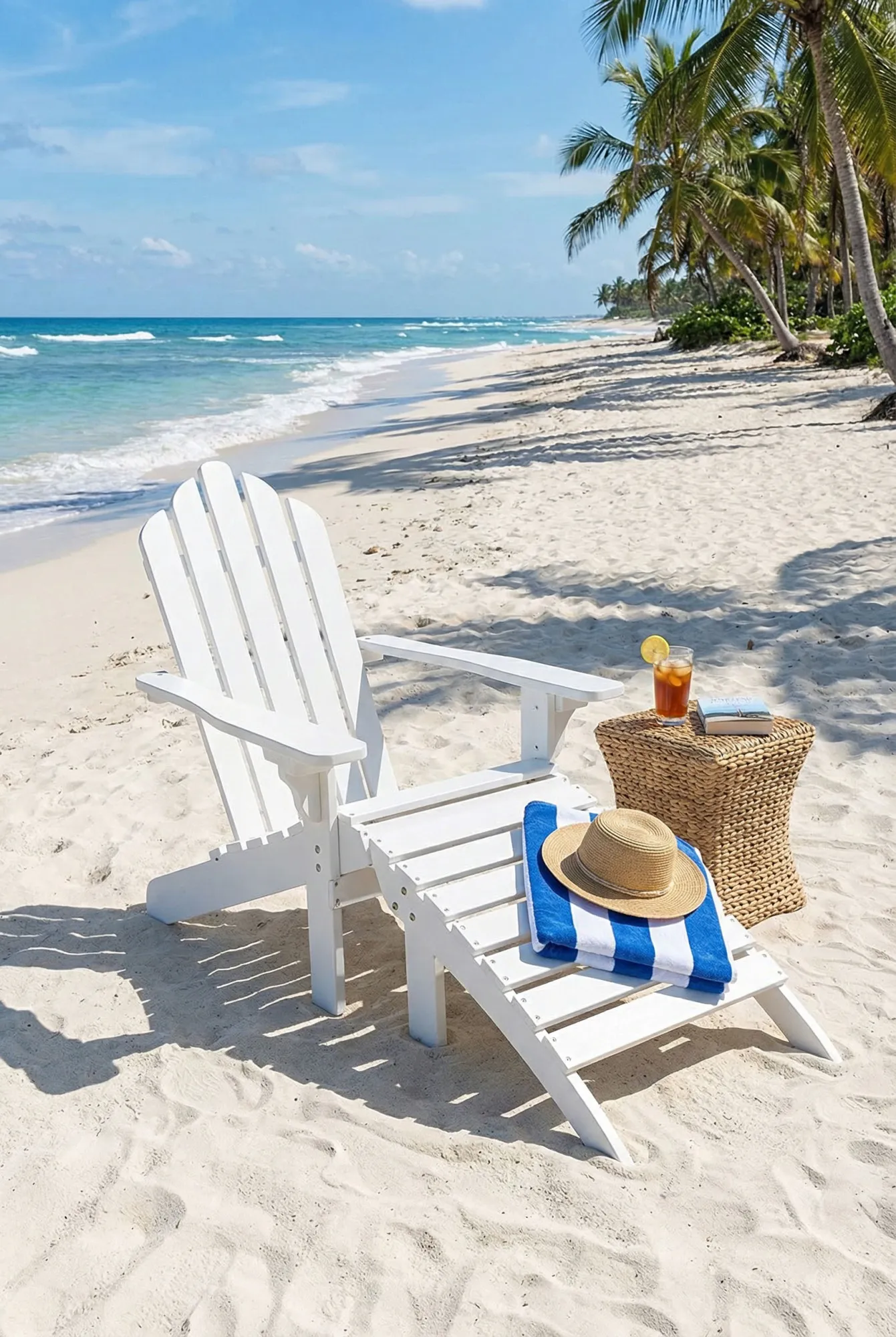 Poniżej pokazujemy jak drewniany leżak Astor w kolorze białym prezentuje się na plaży: