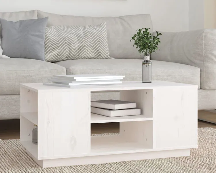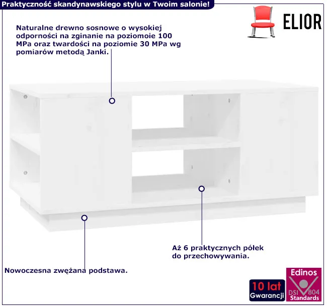 Dotyczy: Drewniany prostokątny stolik kawowy z półkami - Tovizo