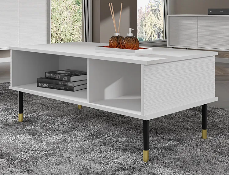 Wizualizacja aranżacji z ławą kawową białą Javens 5X