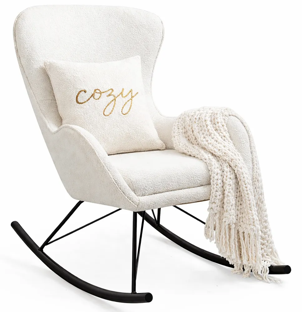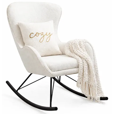 Dotyczy: Kremowy fotel bujany boucle na drewnianych płozach - Axor 5X