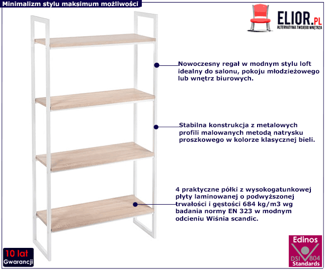 - Modny kolor: biały + wiśnia scandic. Kliknij w link i sprawdź także inne regały industrialne w sklepie Edinos.pl. Stwórz swój praktyczny zestaw mebli.