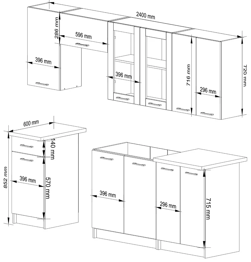Zestaw mebli kuchennych Dalina 240 cm ma wszystko czego potrzebujesz: