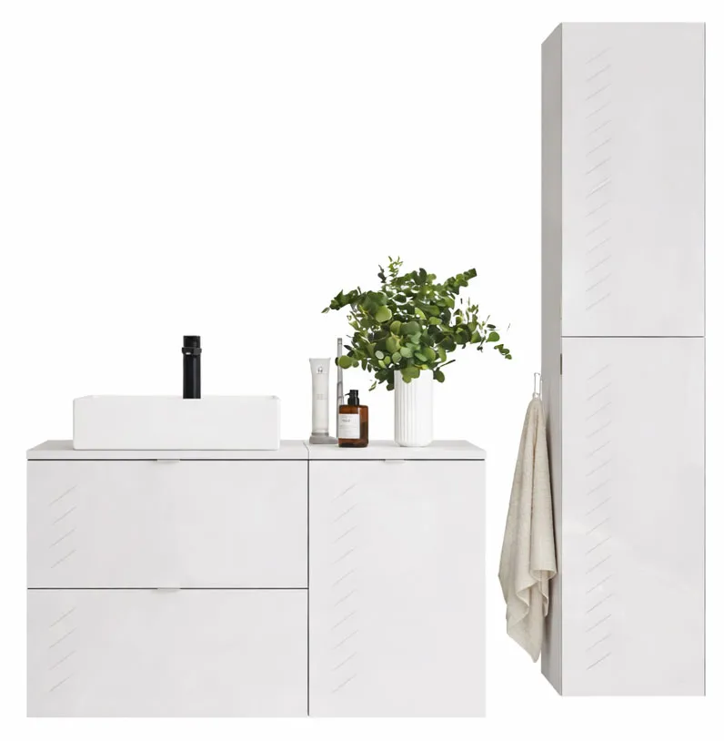 Biały komplet podwieszanych mebli łazienkowych - Tiris 13X