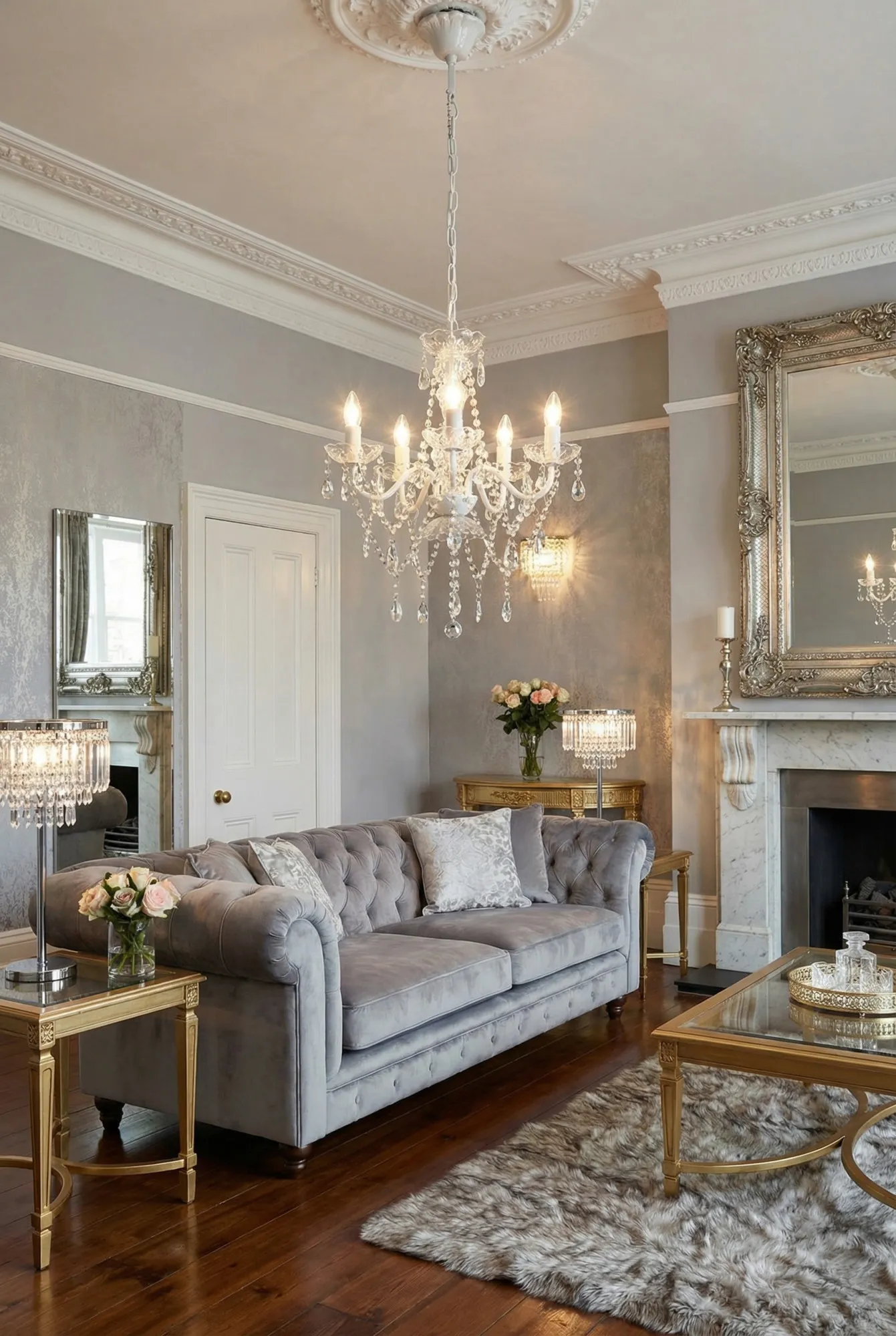 Aranżacja salonu z kryształowym świecznikowym żyrandolem - E960-Hilo