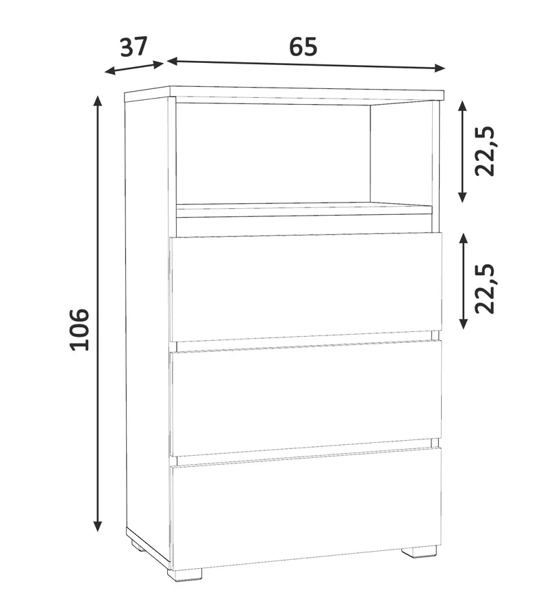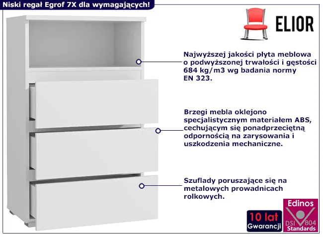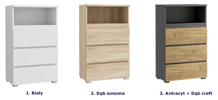Dotyczy: Niski regał z 3 szufladami i półką dąb sonoma - Elsinor 7X